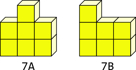 Un polycube constitué de 7 cubes est appelé un heptacube. Il en existe 1023 différents dont 108 qui sont « plats ».